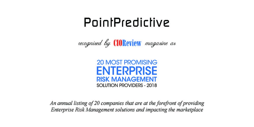 PointPredictive was featured in an article by CIO Review. Their annual listing of 20 companies that are at the forefront of providing Enterprise Risk Management solutions and impacting the marketplace. Article Link – Click Here
